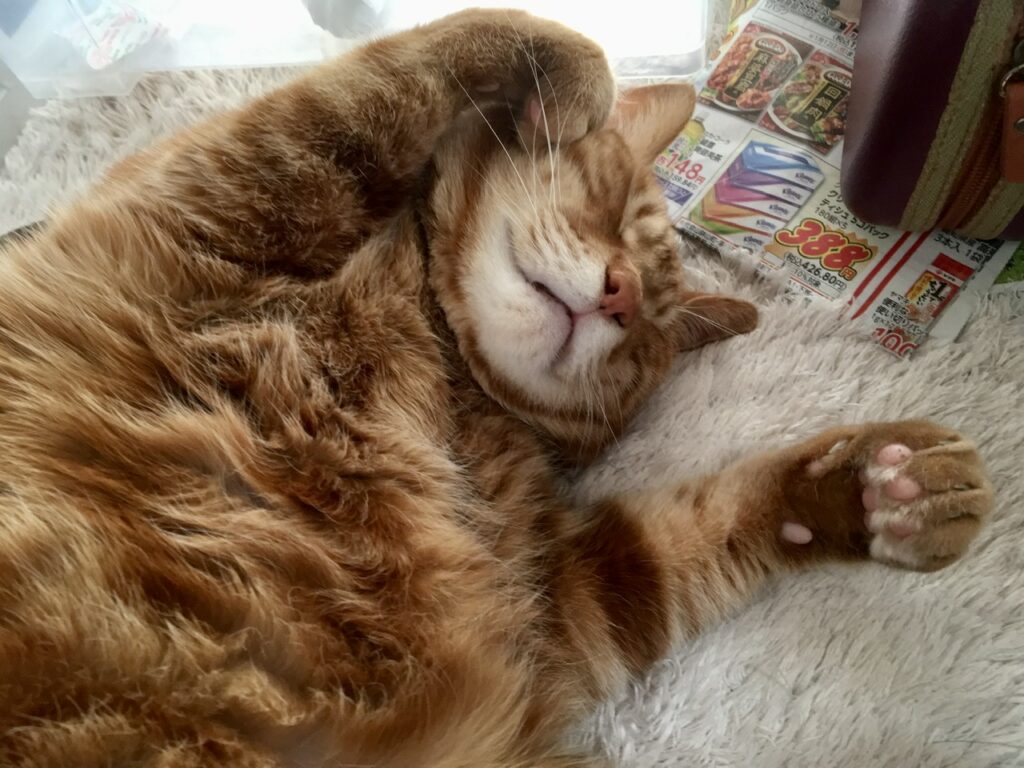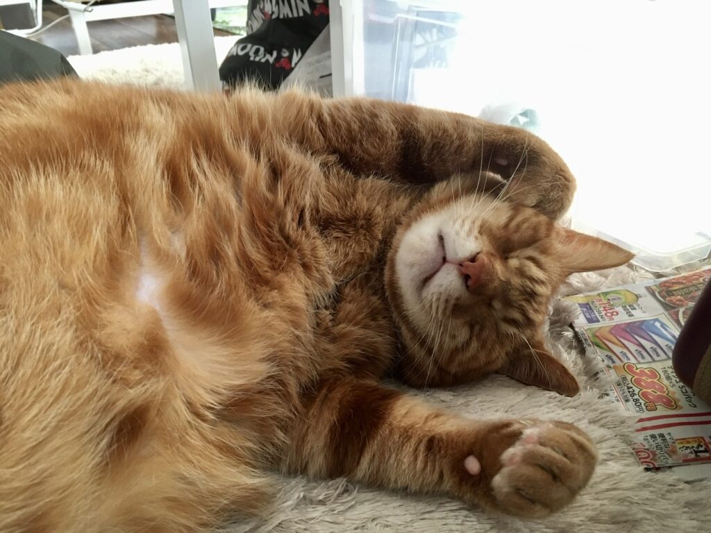 この寝姿を見るに、すぐ暑くなってしまったのですかね。