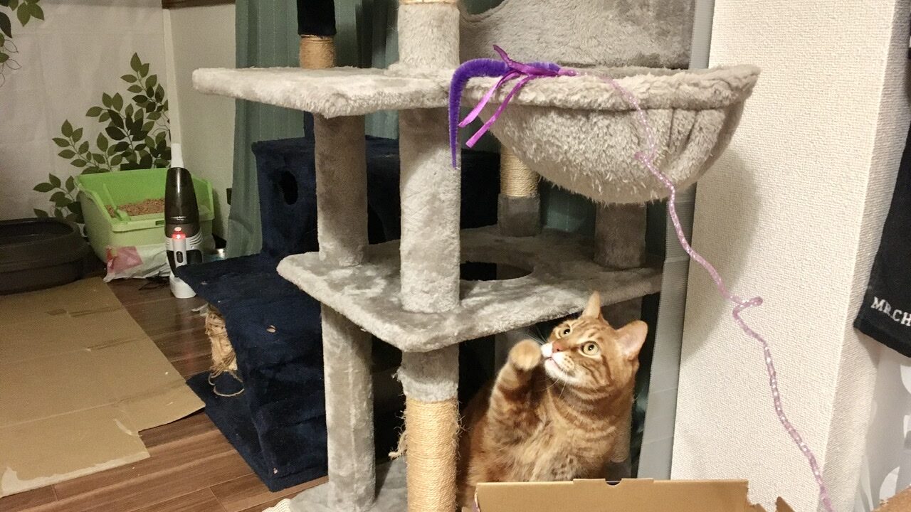 そう思いながらむぎさんと遊ぶために猫じゃらしを持つと、その先に見覚えのない茶色い塊が。