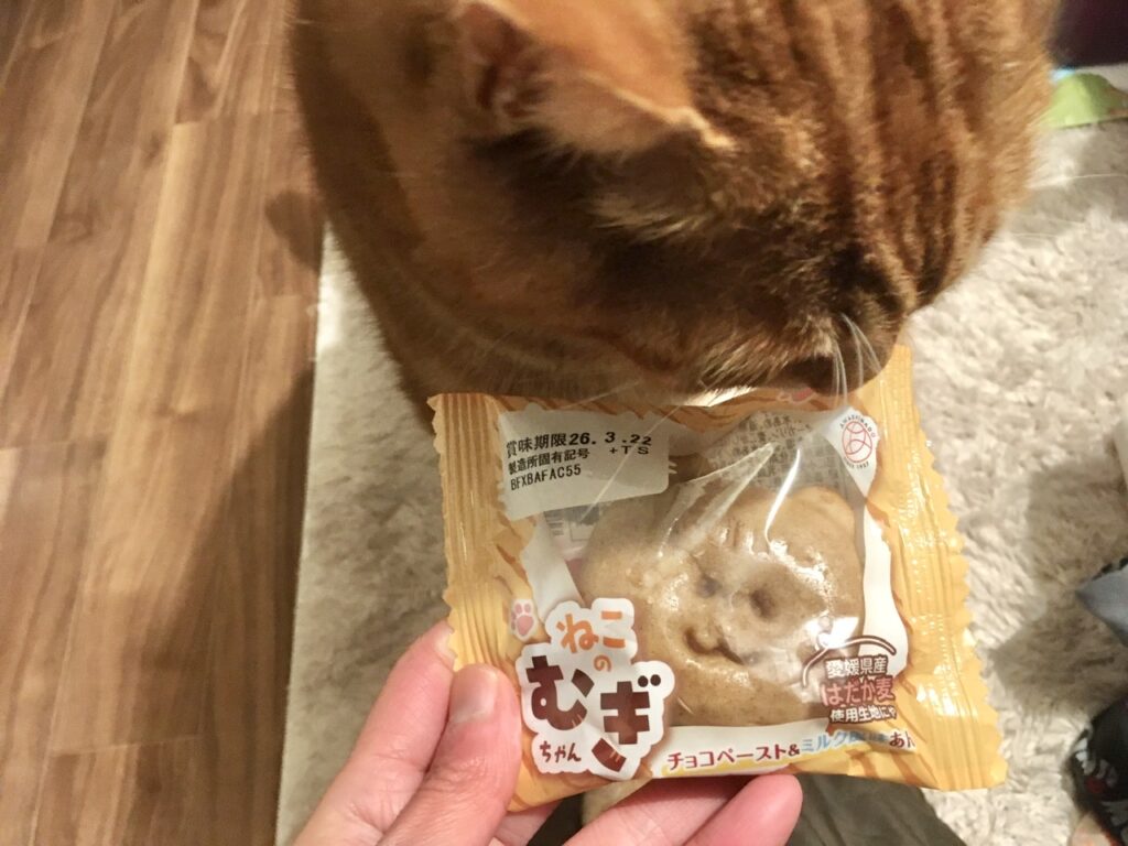 仕事帰り、スーパーに寄ったらこんなお菓子を見つけました。その名も「ねこのむぎちゃん」。チョコペーストとミルク風味の餡が入ったおまんじゅうです。