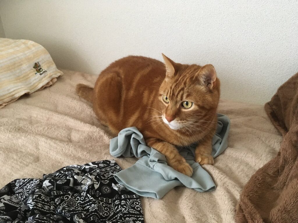 むぎさんにとってそそる香りがするのでしょうか。同じ洗剤で洗っている他の衣類やタオルには反応しないのに…謎。