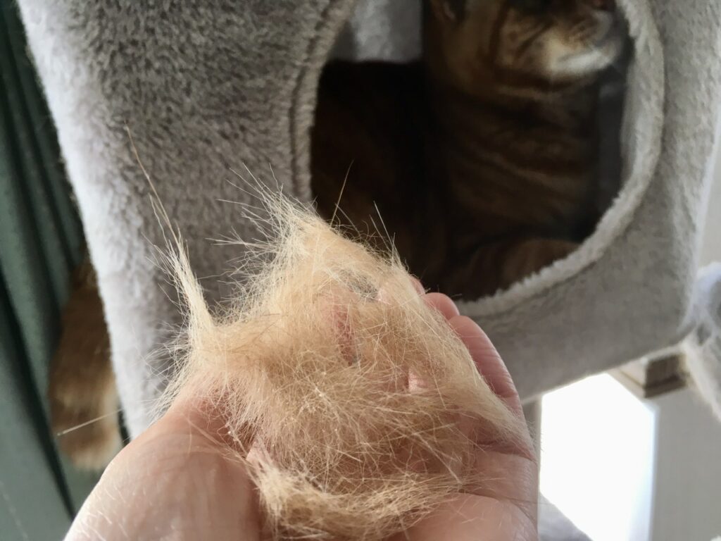冬毛はアンダーコートがみっしり生えているのでしょう。永遠にホワホワが取れます。ブラッシングしがいがあります。