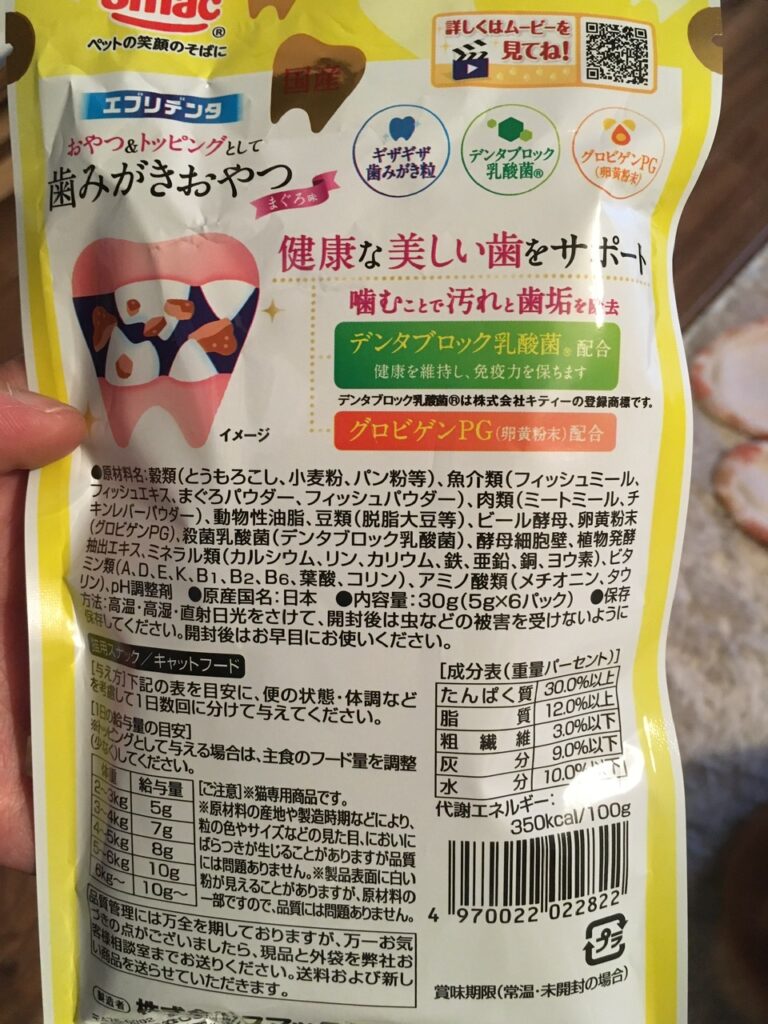 ちょうどそんな飼い主の気持ちを察しているかのように国産の歯みがきおやつが並べてあったため、そちらを購入してみました。
