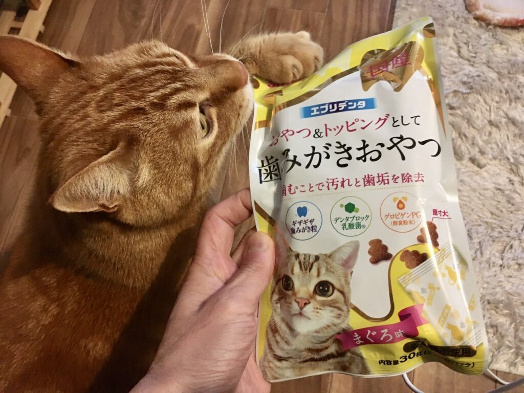 歯みがきが困難なむぎさんには歯みがき効果のあるおやつが欠かせません(実際、歯みがきおやつをやめると口臭がきつくなる)。