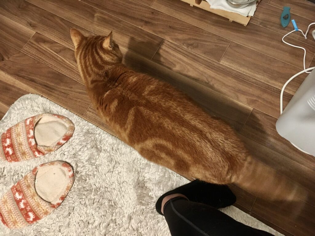 むぎさんも毛が抜けてむずむずするのでしょう。ファーミネーターを構える私の前へそそくさとやってきては「さあやってくれ!」とばかりに背中を向け、積極的にブラッシングを受容してくれます。
